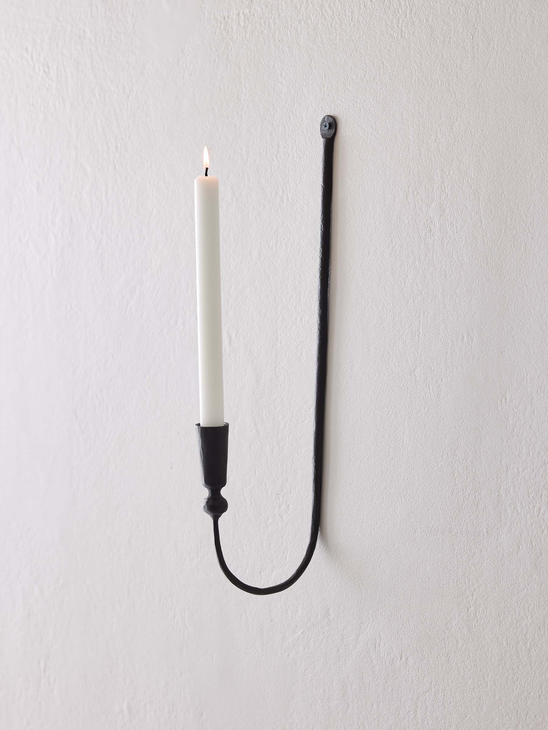 Iron wall candle holder • Fits for dinner candles • Timeless and classic design • Screw for mounting not included This iron wall candle holder is handcrafted and part of our Boule series, which features timeless candle holders with a rustic, handmade character. Designed for dinner candles, it can be easily mounted on the wall with a screw (screw not included). For a more decorative effect, it can be used together with our candle ring.